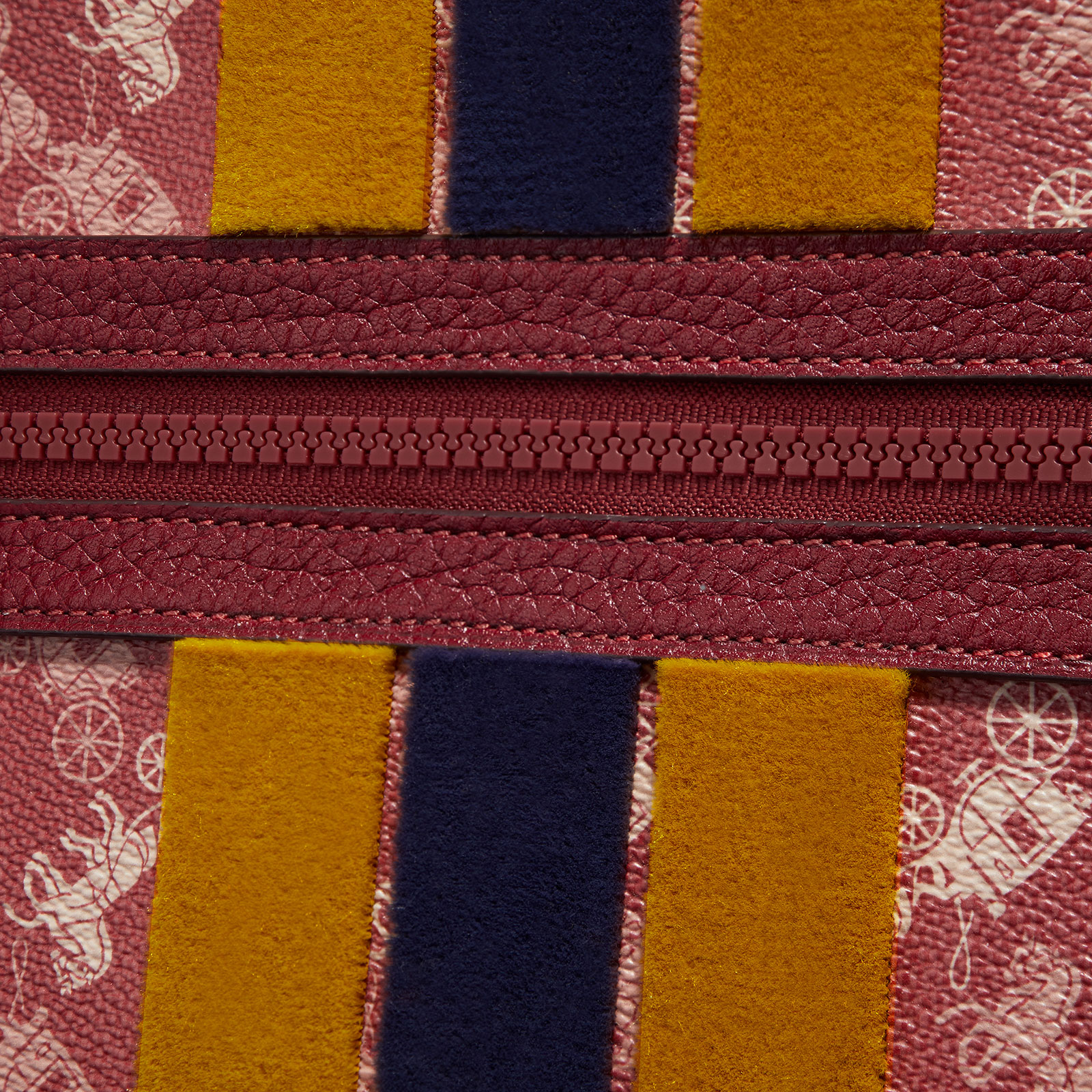COACH WOMENS LARGE FRONT ZIP WRISTLET WITH HORSE AND CARRIAGE PRINT AND VARSITY STRIPE