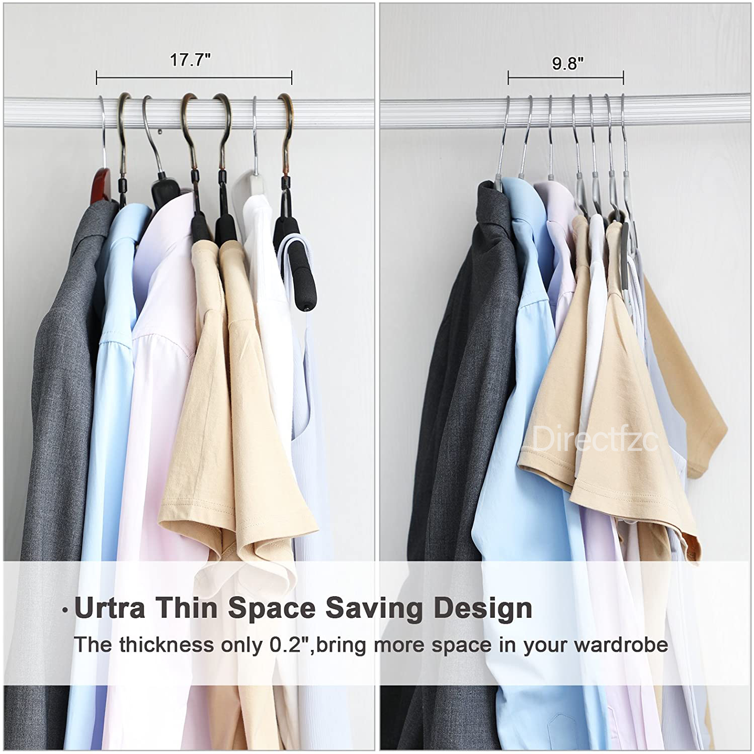 • ULTRA SLIM design to maximize closet space and perfect size for adult clothes. A secondary hang bar for ties and scarves or other accessories