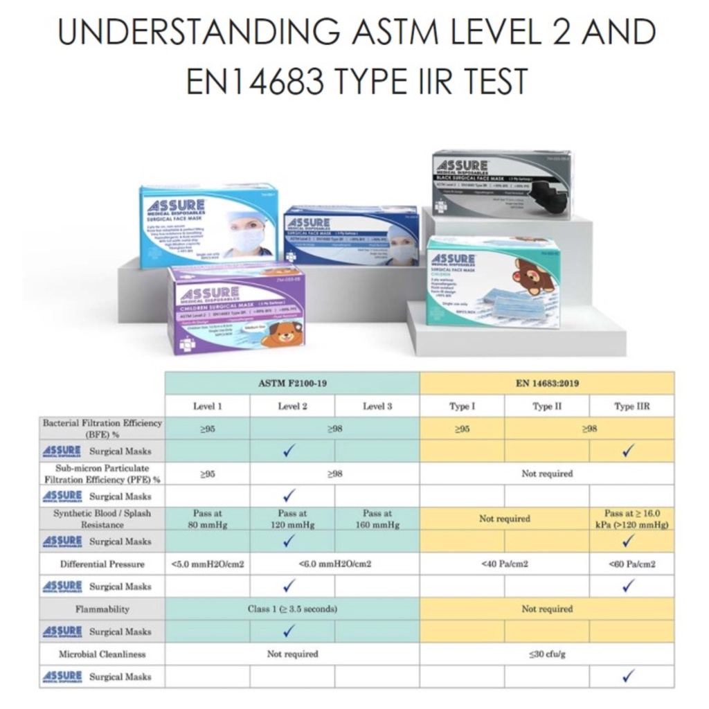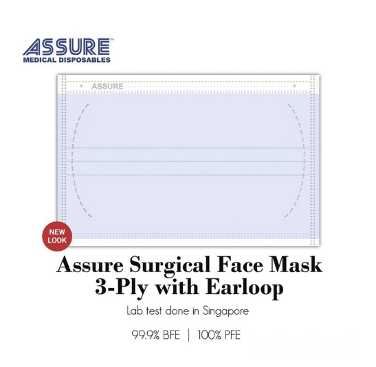 [INSTOCK] ASSURE Surgical Mask Earloop 3-ply Adult 50's/box Disposable Blue Black 3ply 50pcs 3 ply WaterProof Water-Resistant Water-Proof Blue Black Clinical Medical Mouth Mask sealed Anti Droplet / A