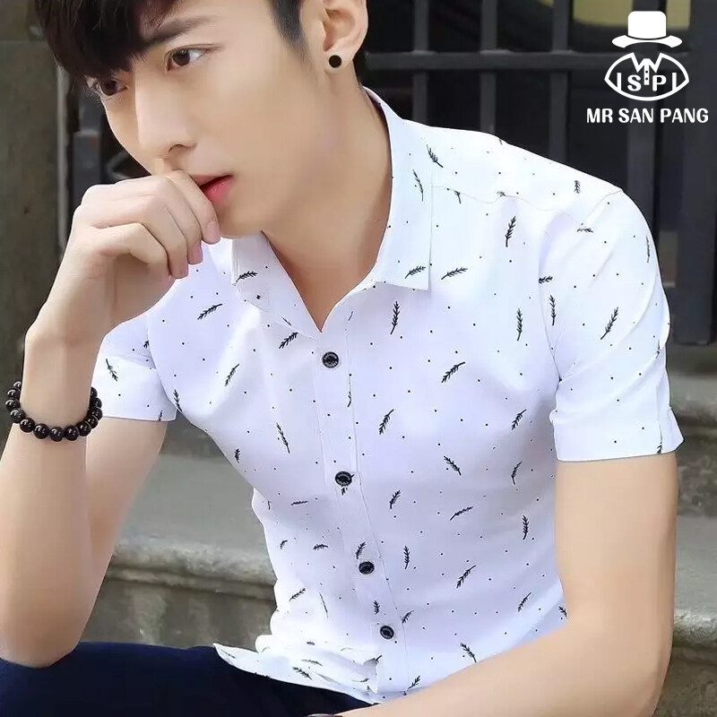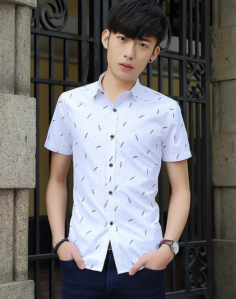 MSP Men Shirt Summer Men's Turn-down Collar Short-sleeved Shirt Cotton Breathable Shirt Casual Printing Feather Men's Clothing
