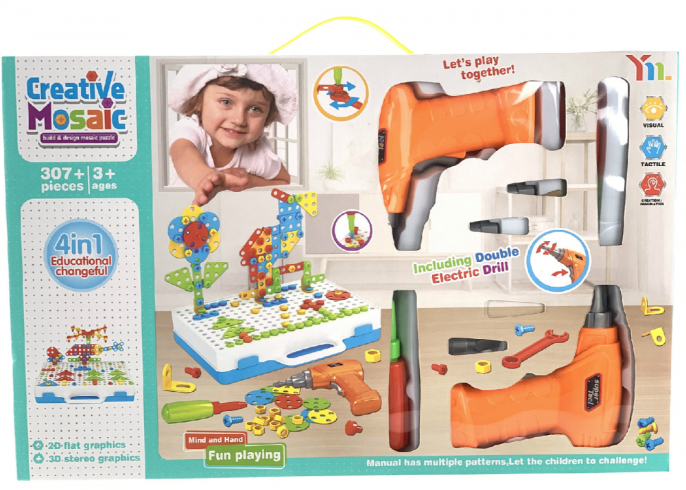 Creative Mosaic Puzzles Play Toys Set Screw Nuts Tools Building Toys For Kids