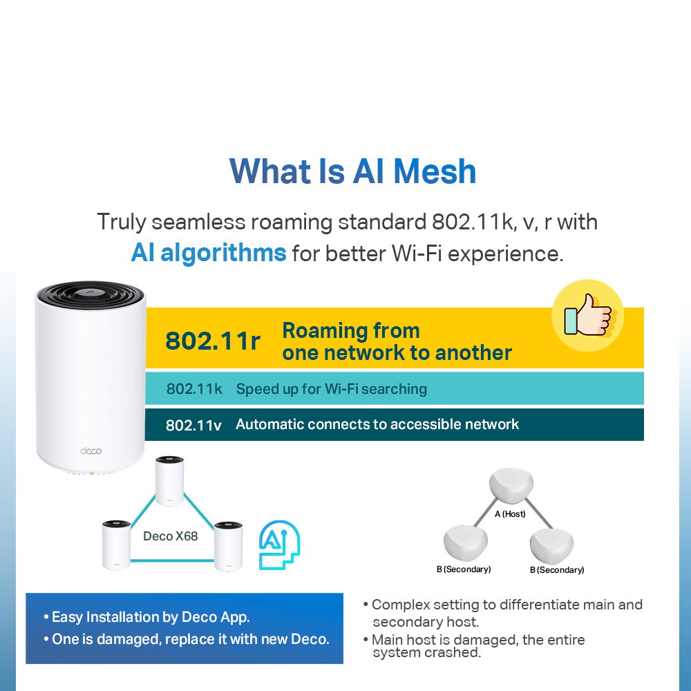 TP-LINK Deco X68 AX3600 Tri Band Gigabit OFDMA MU-MIMO WiFi 6 AI-Driven Mesh Router (Whole Home Mesh WiFi 6 System) Works with all Telcos (Supports IPTV)