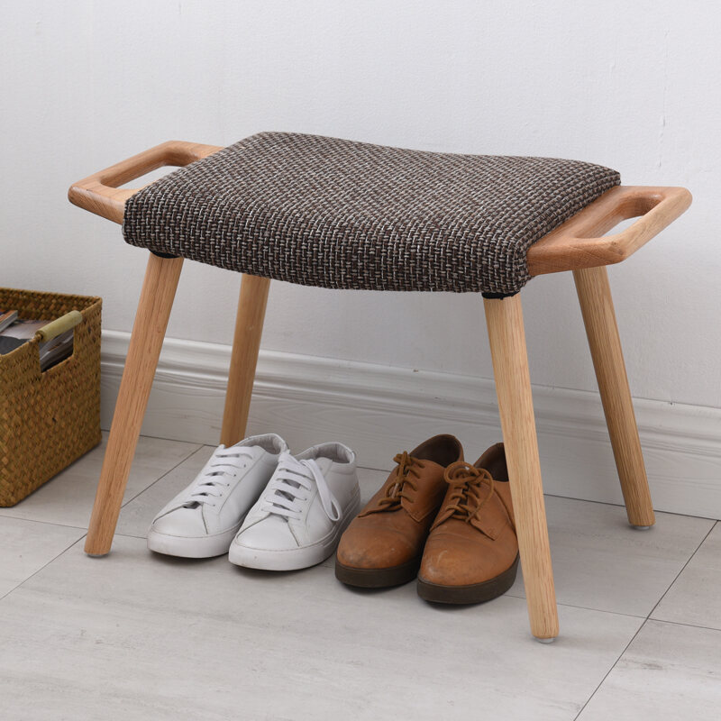 Nordic Solid Wood Shoe Changing Stool Shoe-Wearing Stool Footrest Dressing Stool Fabric Small Stool Sofa Stool Bench Home Low Stool