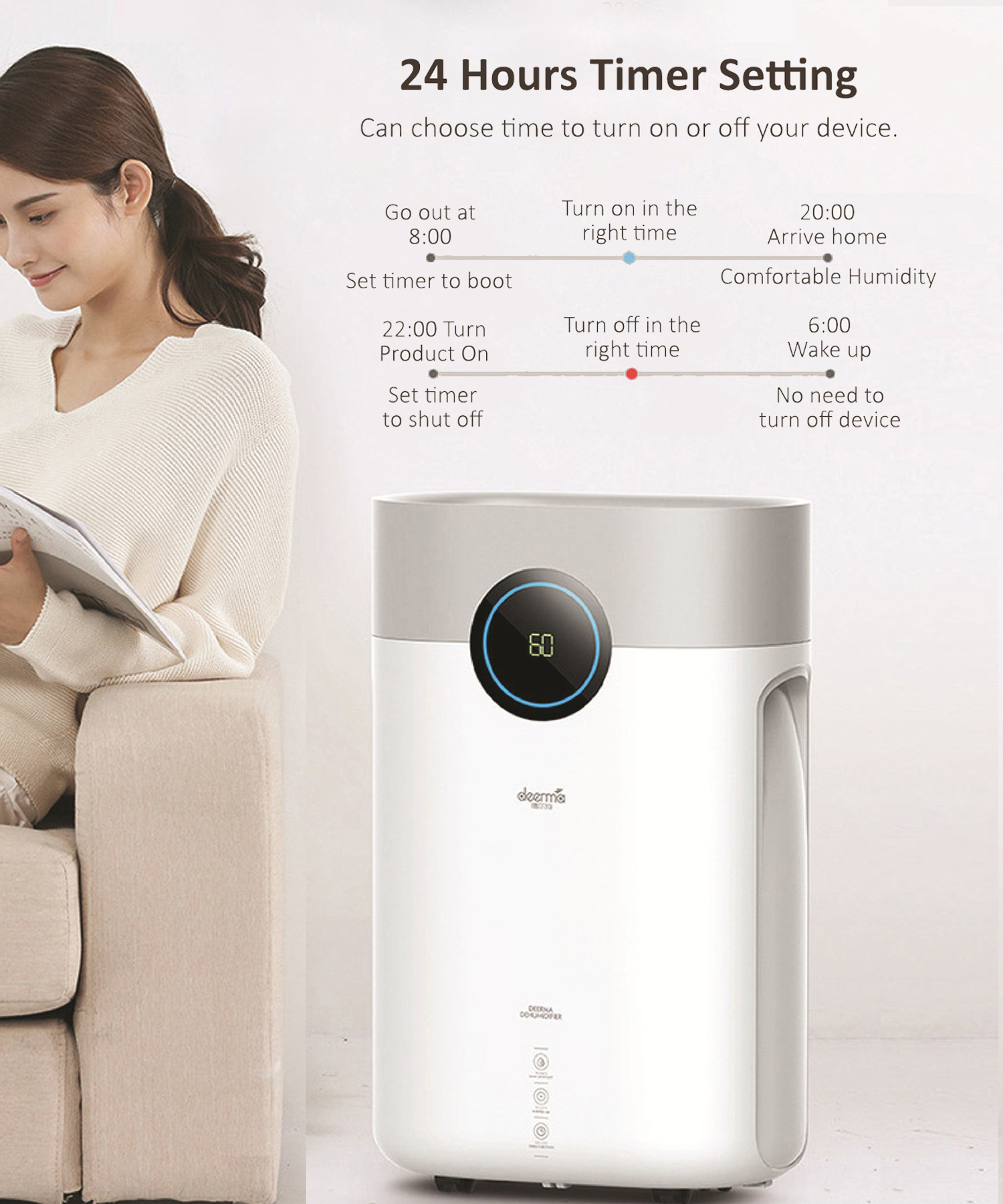 Deerma DT16C 15L Dual Display Multifunctional Smart Screen Purification Air Dehumidifier 24 Hours Appointment