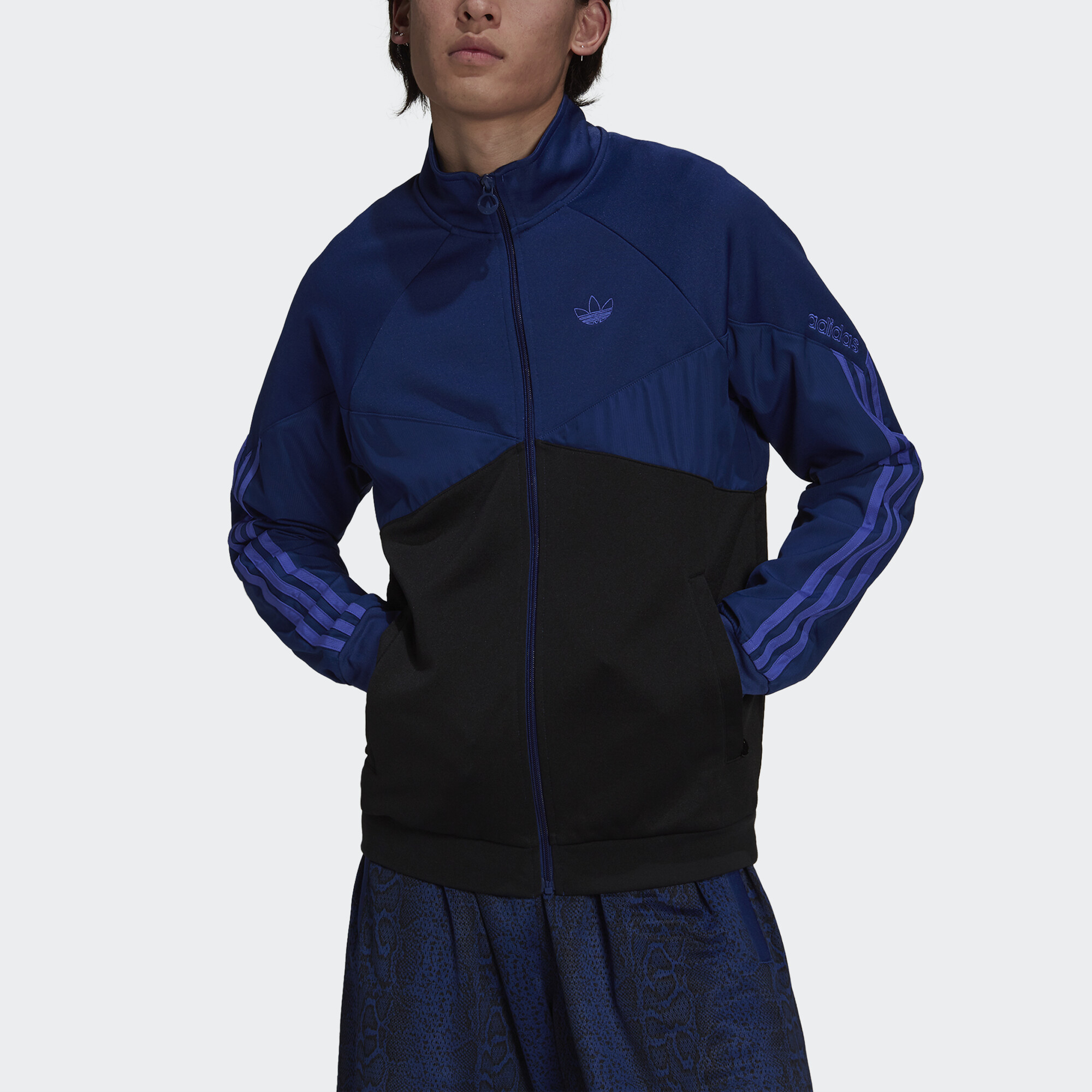 One part yesterday, one part tomorrow. That's our kind of timeless. Heavyweight fabric gives you a ready-for-anything feel when you zip into this adidas track jacket. Retro blocks of colour look super cool layered over your favourite vintage tee. This product is made with recycled content as part of our ambition to end plastic waste.