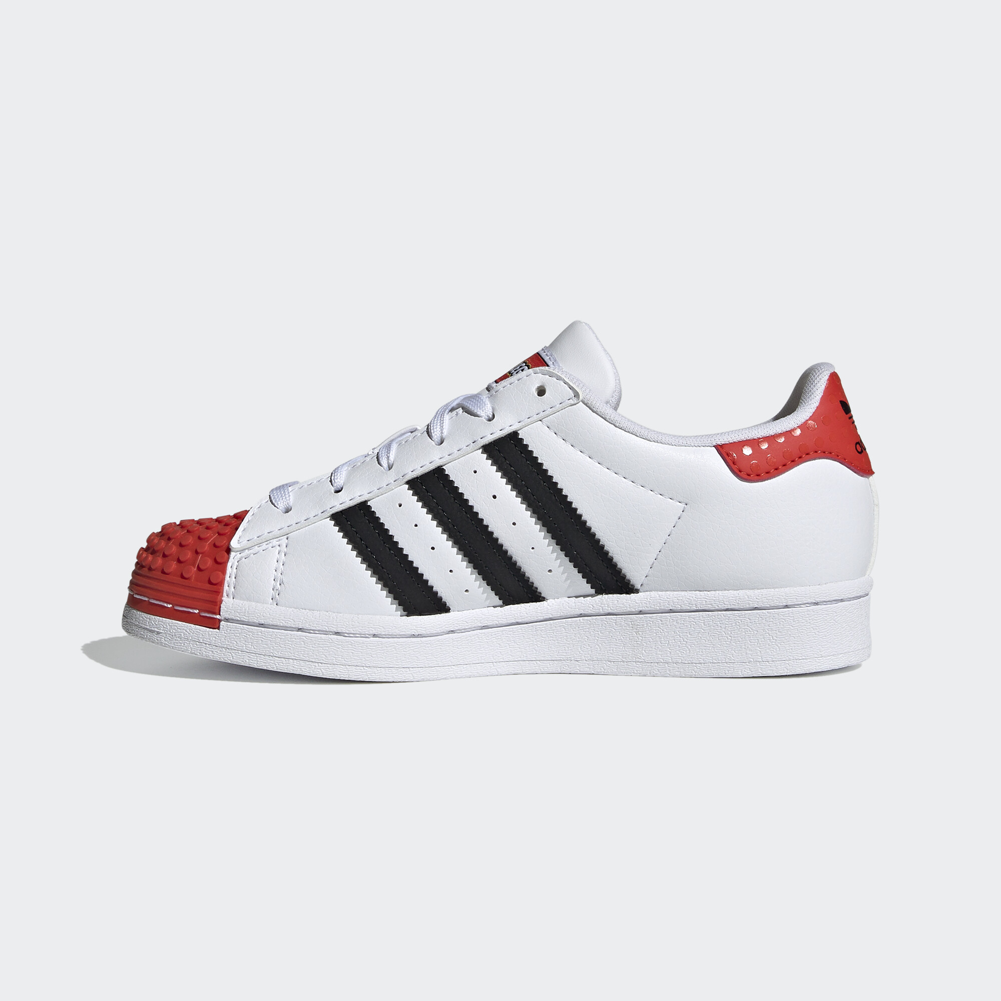 Style, fun and comfort is not a bad combination to have. Superstar LEGO® shoes feature iconic 3-Stripe branding and playful design details with LEGO brick-inspired texture on the shell-toe and heel-tab. Comfortable sockliners have been designed to allow for wearing around the clock – ideal for patio-to-playground scenarios.