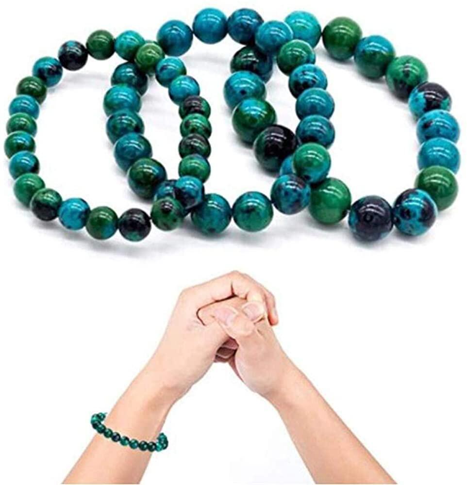 【Fairy Castle】Diabetes Relief Bracelet, Handcrafted 8mm Natural Stone Elastic Malachite Crystals Energy Beaded Bracelets Health Care Jewelry