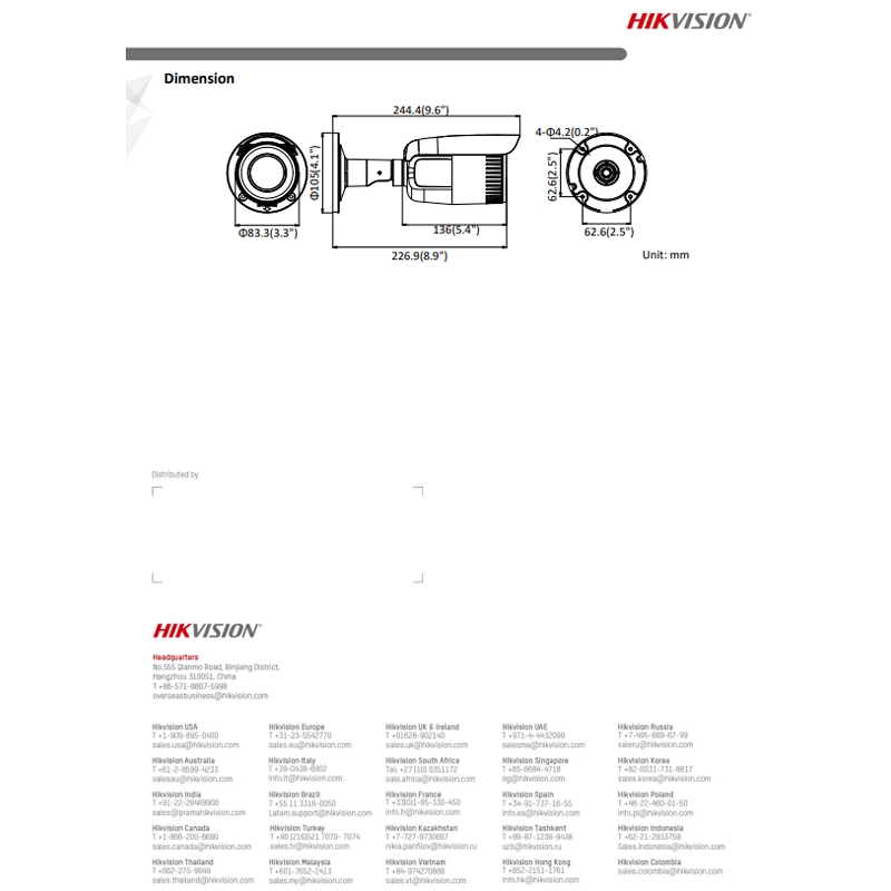 Hikvision DS-2CD1623G0-IZ 2MP EXIR Varifocal Bullet CCTV Network IP Camera