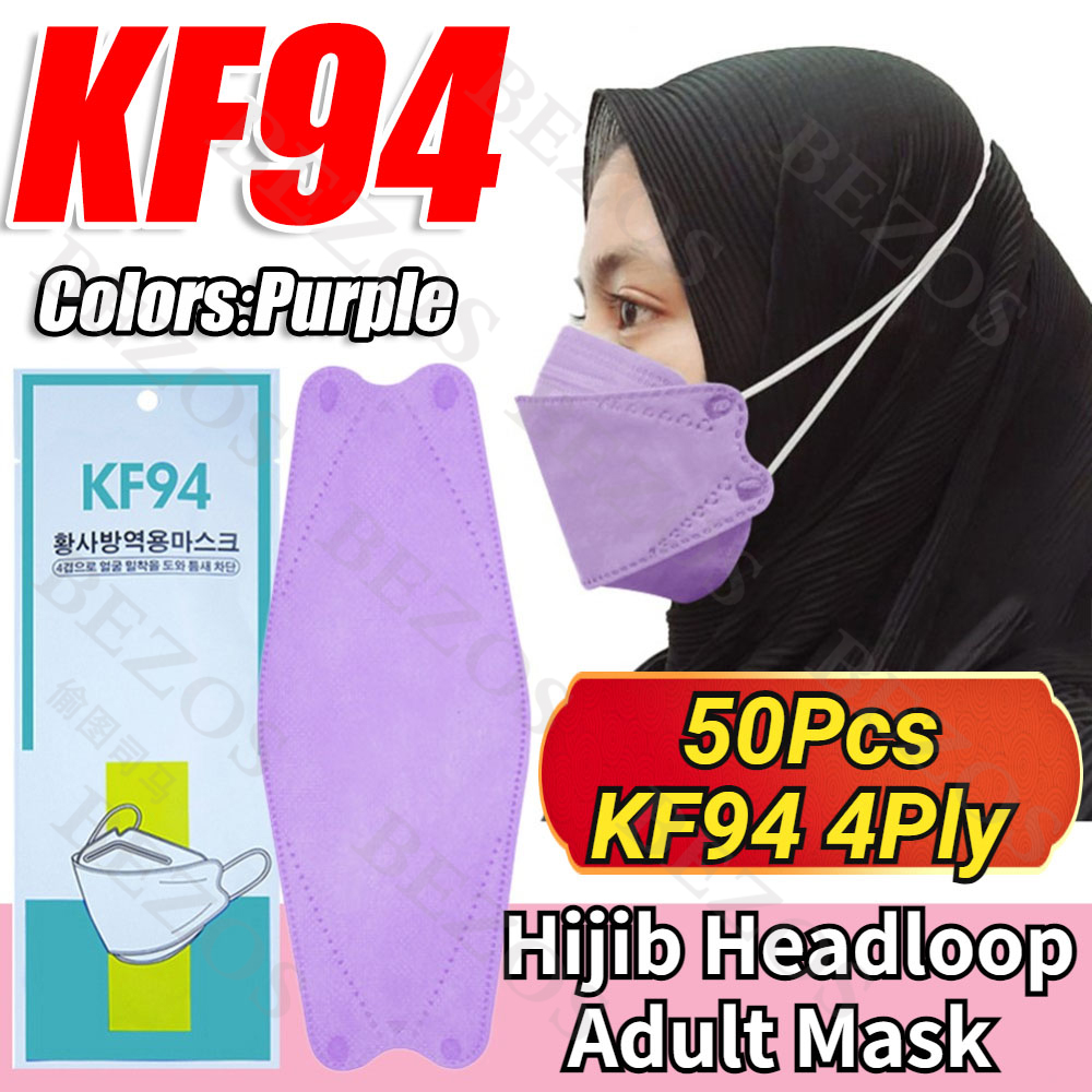 【Hijab】14Colors 50PCS KF94 Headloop Hijab Korean Topeng Muka Headloop 4Ply High Quality FaceMask Topeng Muka Tudung Kpop Kdrama Protection Korea Respiratory Products Cover Prevent Influenza and Antiba