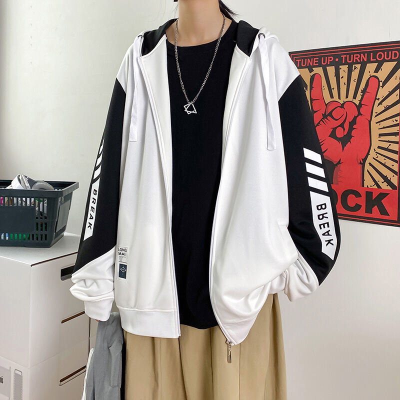 Autumn New Cardigan Coat Men's Korean Style Hong Kong Style Trendy Loose Casual Hooded Sweater Student Couple Wear Business Attire