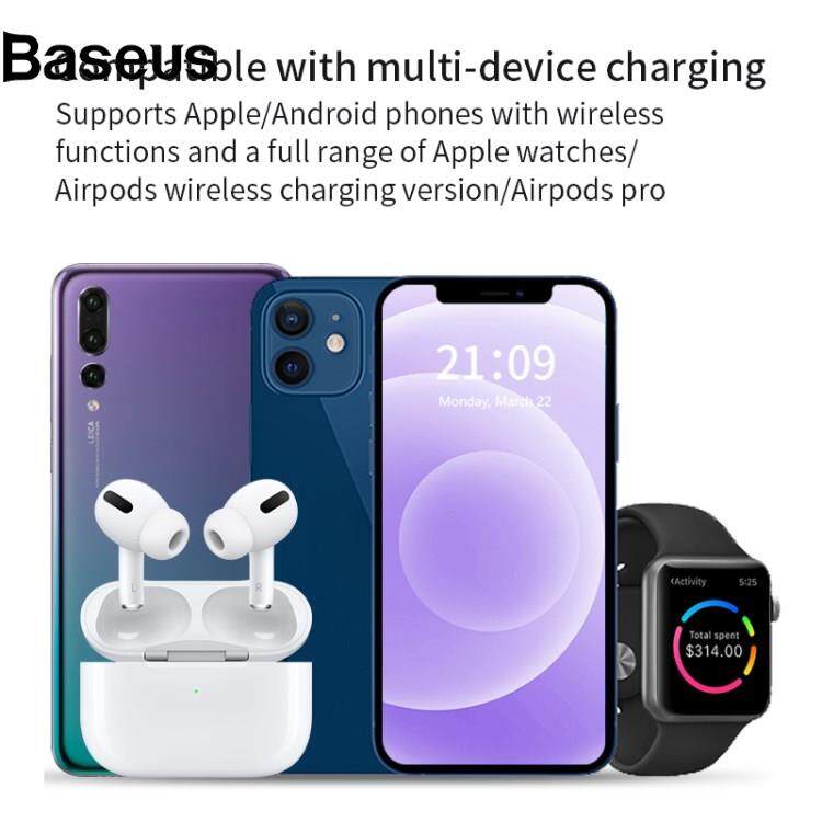 Baseus X455 Foldable 3-in-1 15W Wireless Charger Desktop Qi Fast Charging Stand Dock for iPhone Android iWatch AirPods