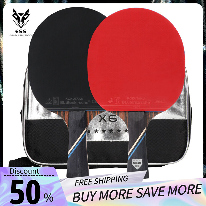 【ESS】KOKUTAKU 6-star Table Tennis Racket 2 Sets of Table Tennis Rackets for Beginners TT Racket for Competition and Training