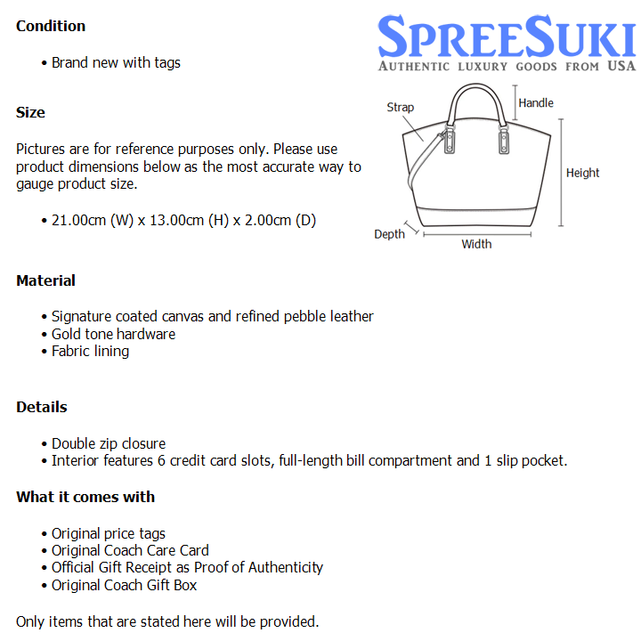 All our products are 100% authentic and purchased from Coach stores in USA. We are a reputable registered business in Singapore and it is illegal to sell counterfeit goods in Singapore. This product also comes with a gift receipt which is printed by the Coach store that we purchased the item from. It states the item that we purchased and the Coach store that it was purchased from, proving the authenticity of the item. Buy with confidence.