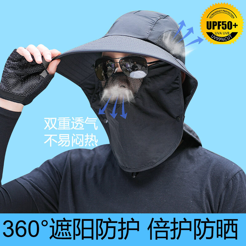 Sun Protection Hat Men's Fishing Hat Summer Fisherman Hat Outdoor Big Brim Cover Face Neck Protection UV Protection Sun Hat Women