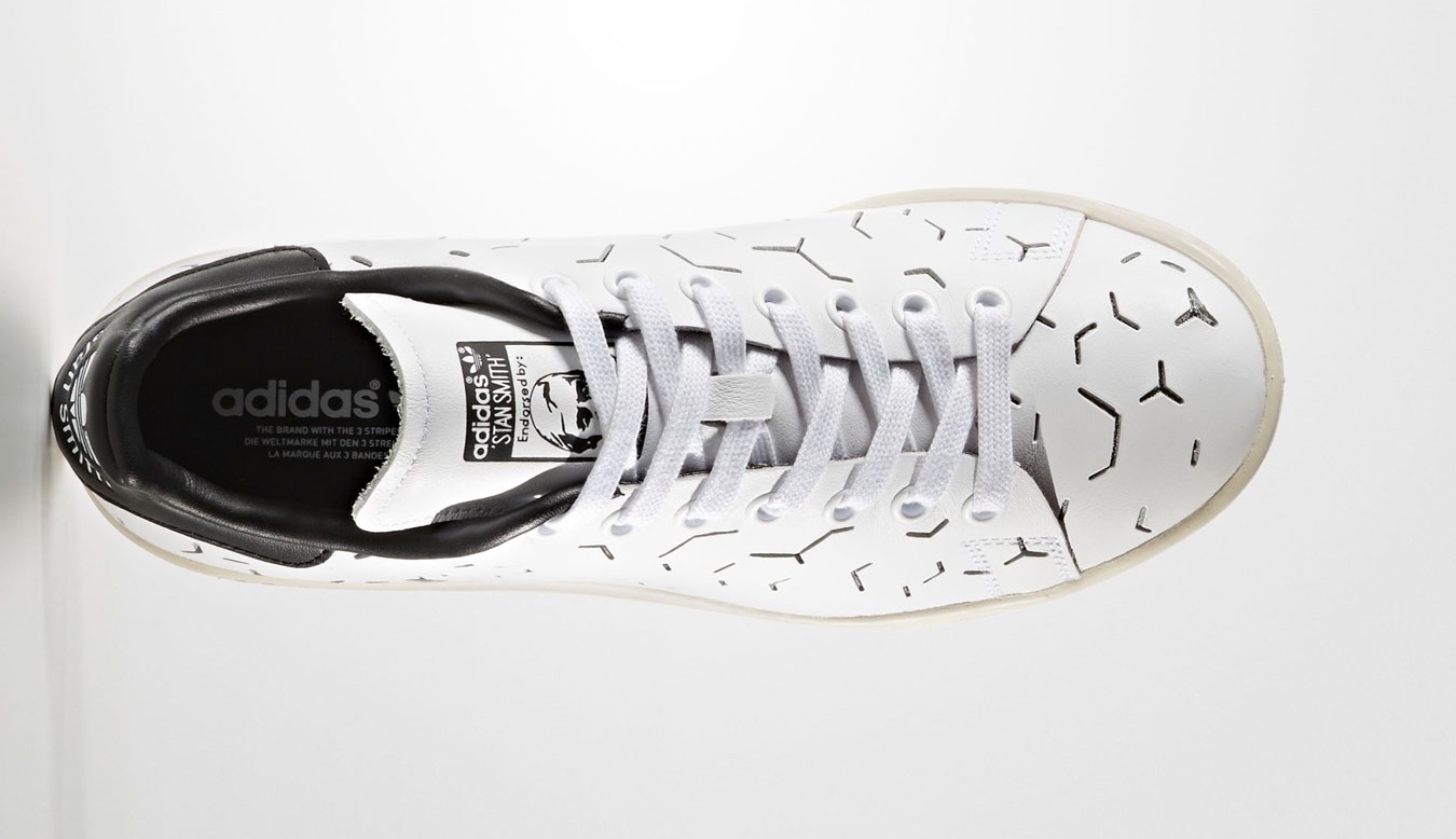 With a modern aesthetic inspired by Scandinavian design, these women's Stan Smith shoes are crafted in leather and feature a geometric laser-cut graphic. Lined with soft leather, they feature a contrast heel tab. A bona fide court champion, the Stan Smith shoe got its name from the biggest tennis star of the '70s. Beloved across the globe, it has a style game that's only improving with age. With a modern aesthetic inspired by Scandinavian design, these women's Stan Smith shoes are crafted in leather and feature a crisp laser-cut geometric graphic. Lined with soft leather, they feature a contrast heel tab and rubber cupsole. Debossed foil tongue label Synthetic leather lining. Enjoy the comfort and performance of OrthoLite® sockliner. Vintage leather heel patch with debossed Trefoil logo. Rubber cupsole