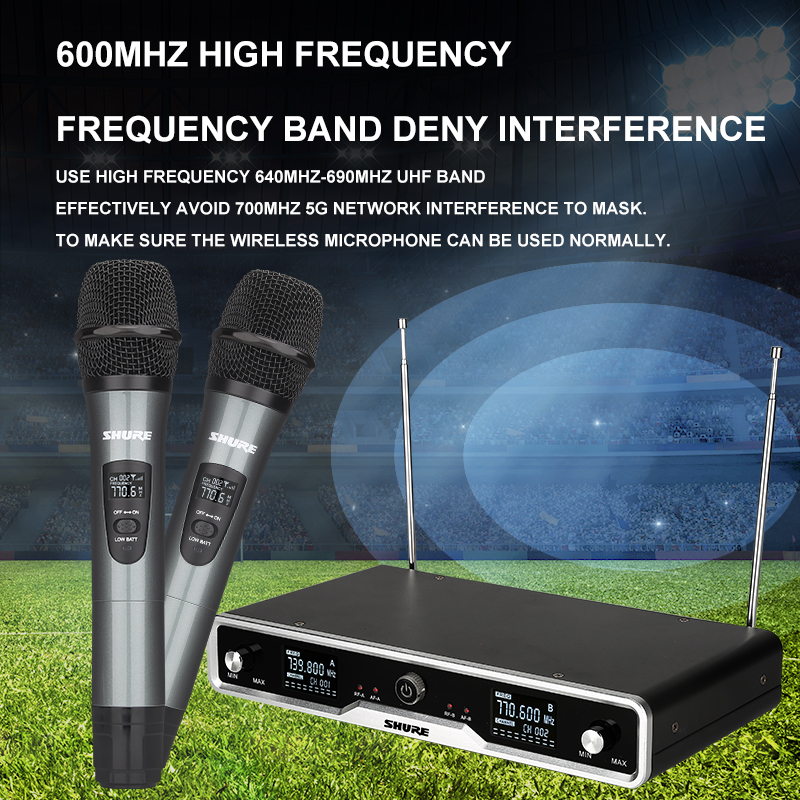 SHURE SR-XPRO UHF Wireless Dual Microphone Dual Microphone SM58 Sturdy and lightweight aluminum body. Receive signals from 800HMz distance, a new set of high frequency wireless microphones.