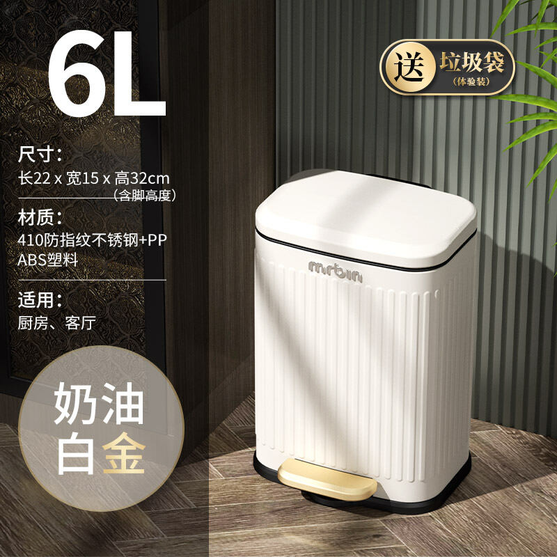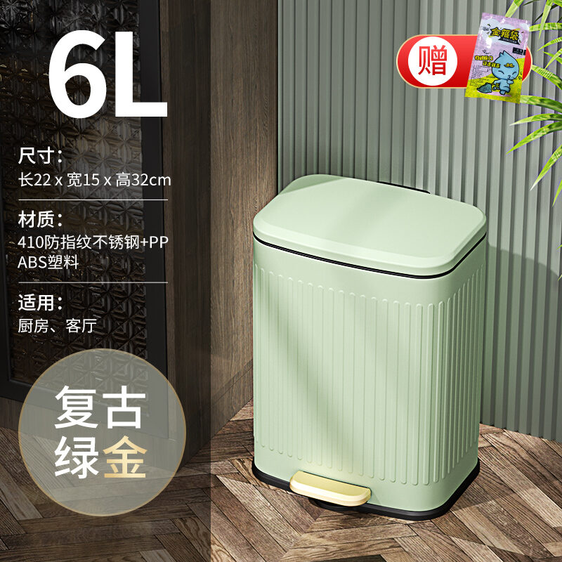 Wheat Barrel Light Luxury Vintage Kitchen Trash Can Household Pedal Large with Lid Living Room Stainless Steel Pedal Dedicated