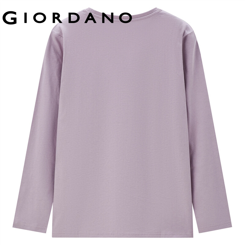 GIORDANO Women Huaxiansheng Series T-Shirts Crewneck 100% Cotton Casual T-Shirts Long Sleeve Crewneck Print Simple Tee 99392098