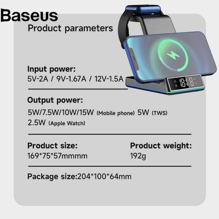 Baseus Z6 Foldable 5-in-1 15W Magnetic Wireless Charger with Flashy Atmosphere Light/Digital Clock Multi-Function Wireless Charging Stand?24hrs ship out?