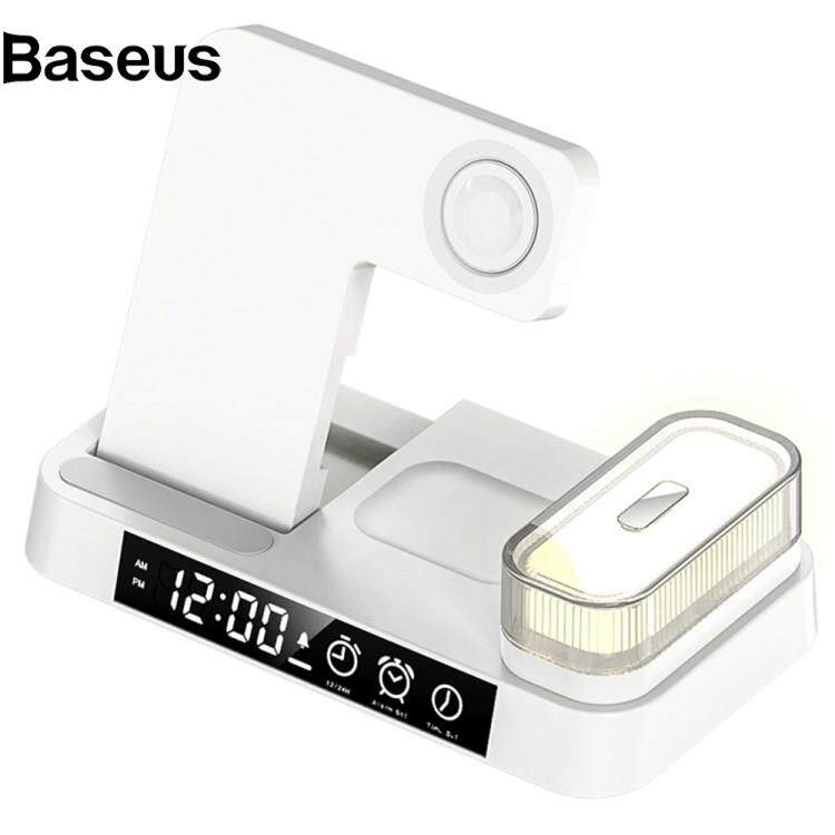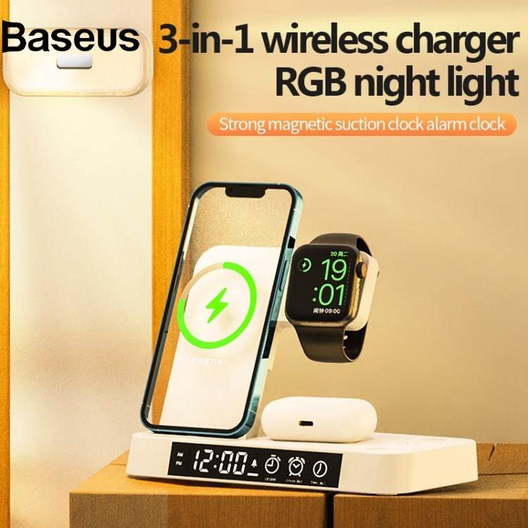 Baseus A37 3-in-1 For Cell Phone Watch 15W Wireless Charger Folding Design Alarm Clock 20W Type C Port RGB LED Night Light