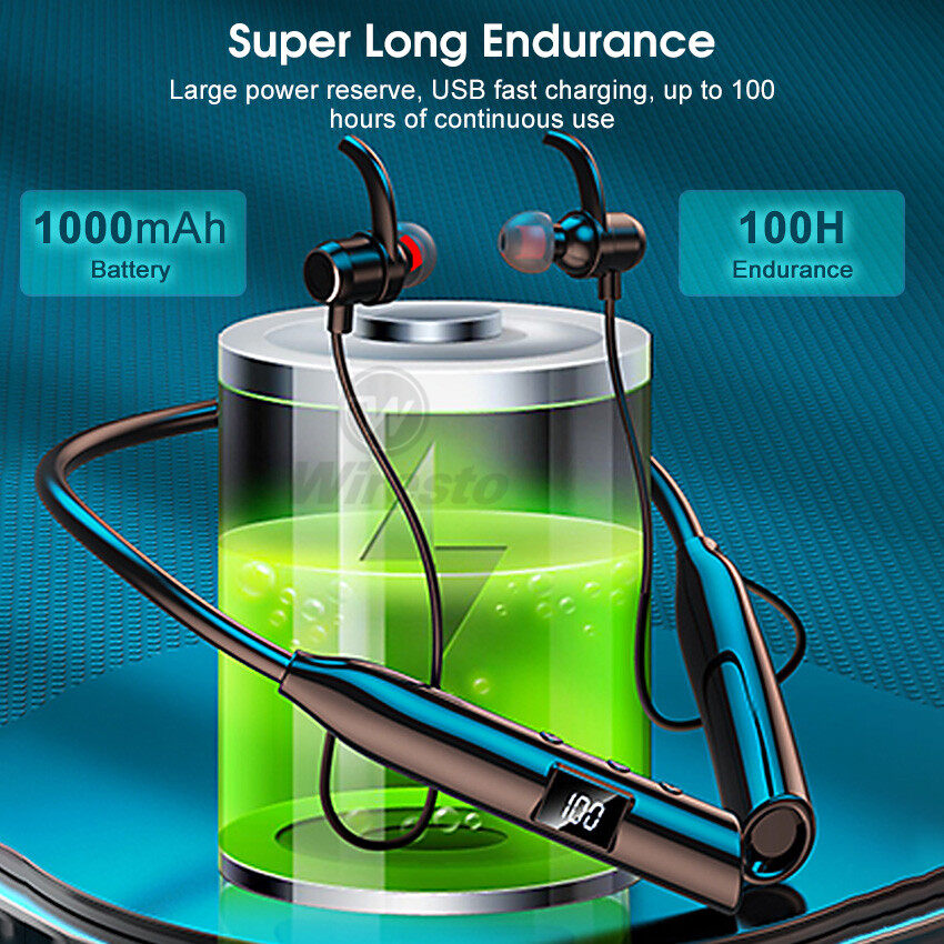 Wiresto TWS Earphone Bluetooth 5.2 In-Ear Headphones Neck Hanging Earbuds IPX5 Waterproof Sport Earphone HIFI Stereo Headset LED Power Display Earbuds Support TF Card Remote Photo With Flashlight