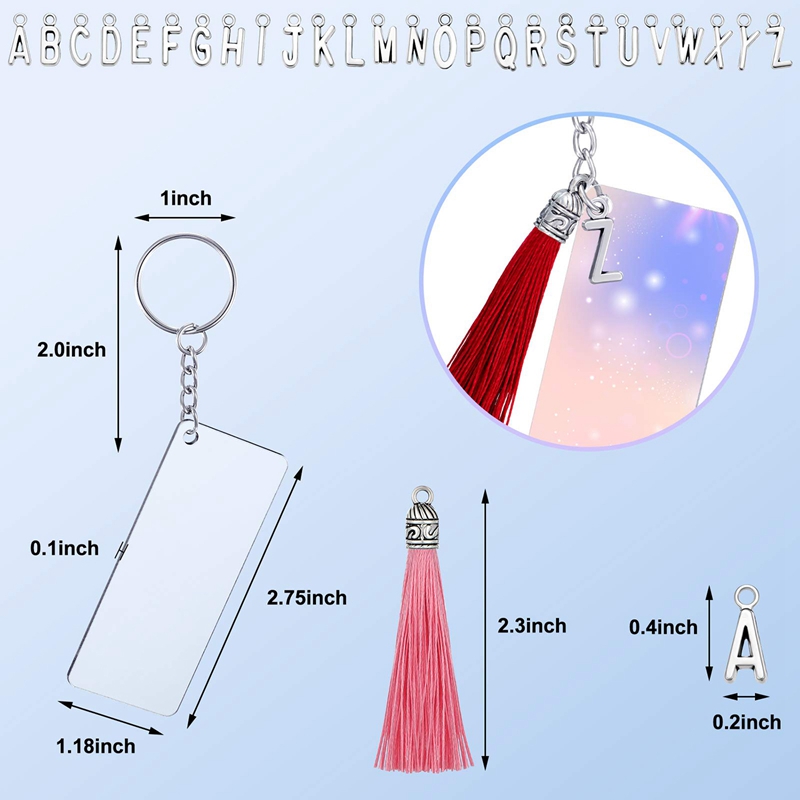 146 Pcs Acrylic Keychain Blank Set,Rectangle Discs Ornaments, Colorful Tassels Decorations for DIY Projects and Crafts
