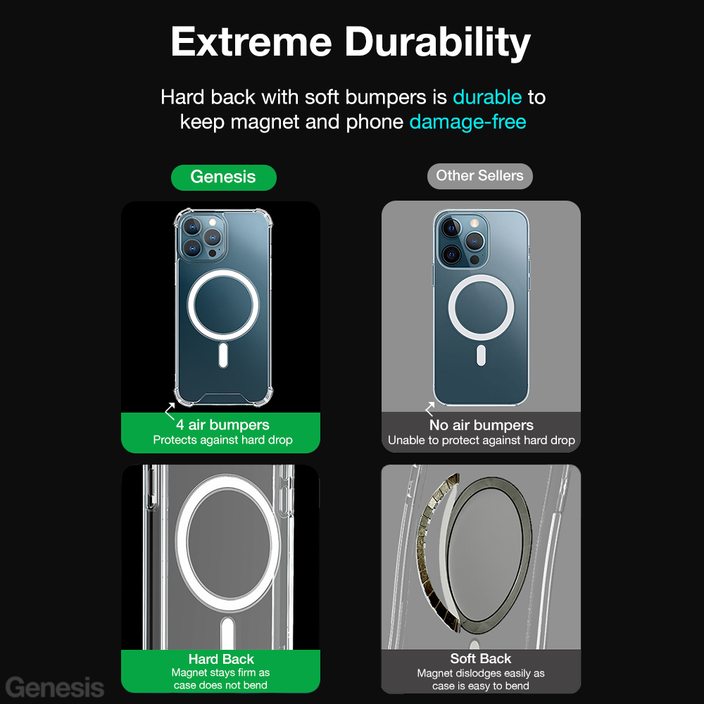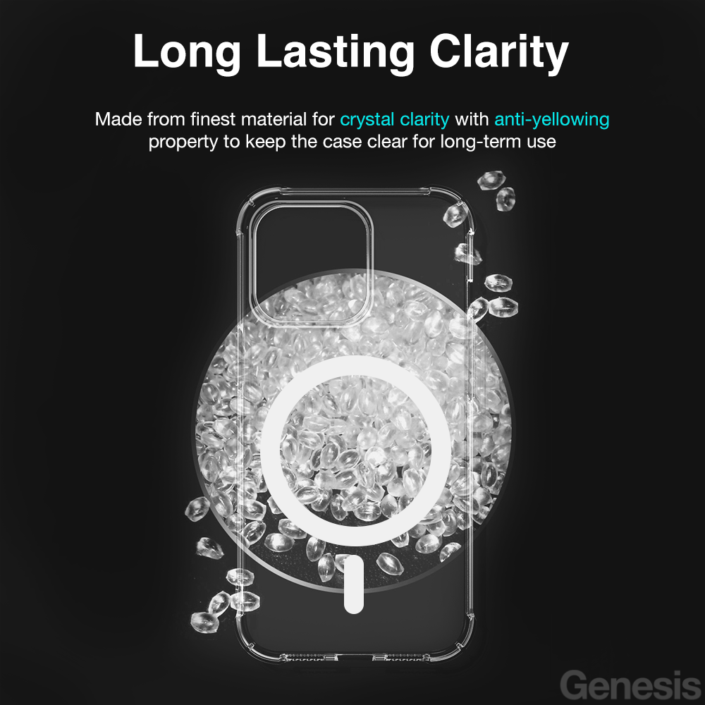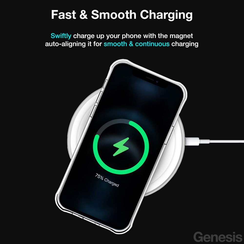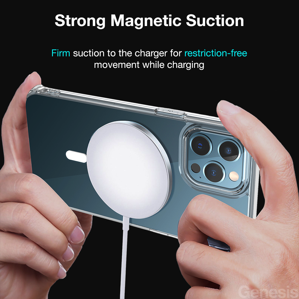 Genesis Magsafe iPhone Case 14 Pro Max/ 13/ 12/ Phone Cover Clear Transparent Wireless Magnetic Charging Casing