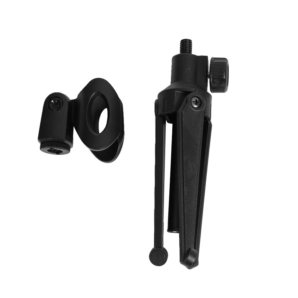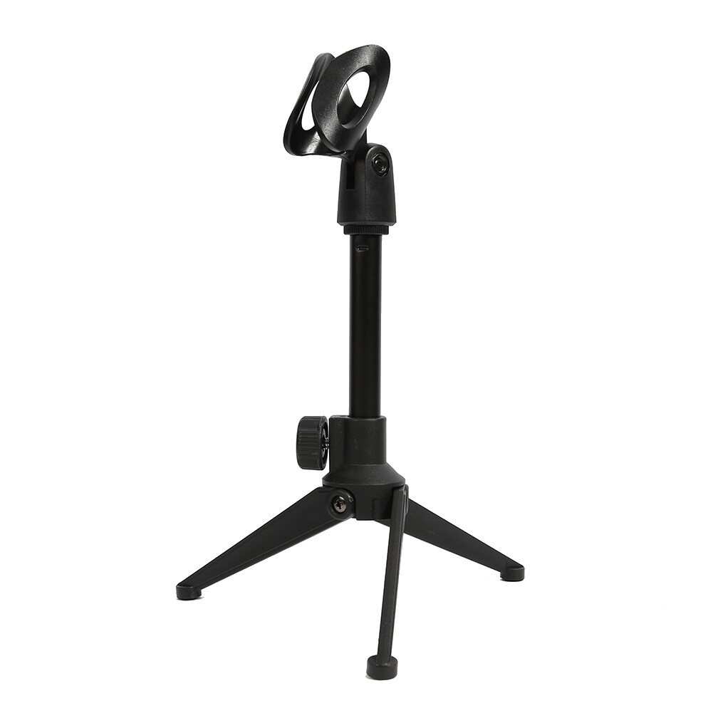 Universal Adjustable Desk Capacitive Microphone Stand Portable Foldable Tripod MIC Tabletop Stand Holder with Microphone Clip Feature: 1. The plastic part is made of ABS high quality material. The foot is made of zinc alloy, which is durable and can be folded with three supporting feet.