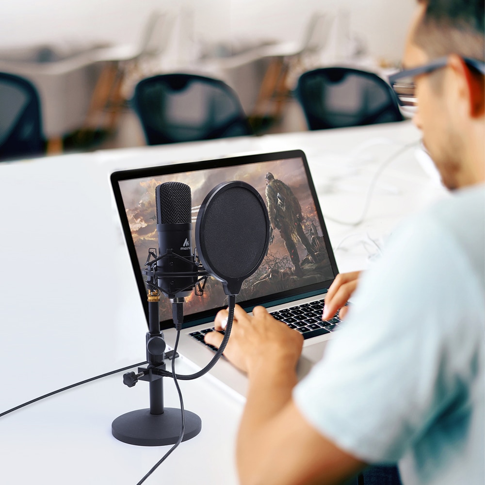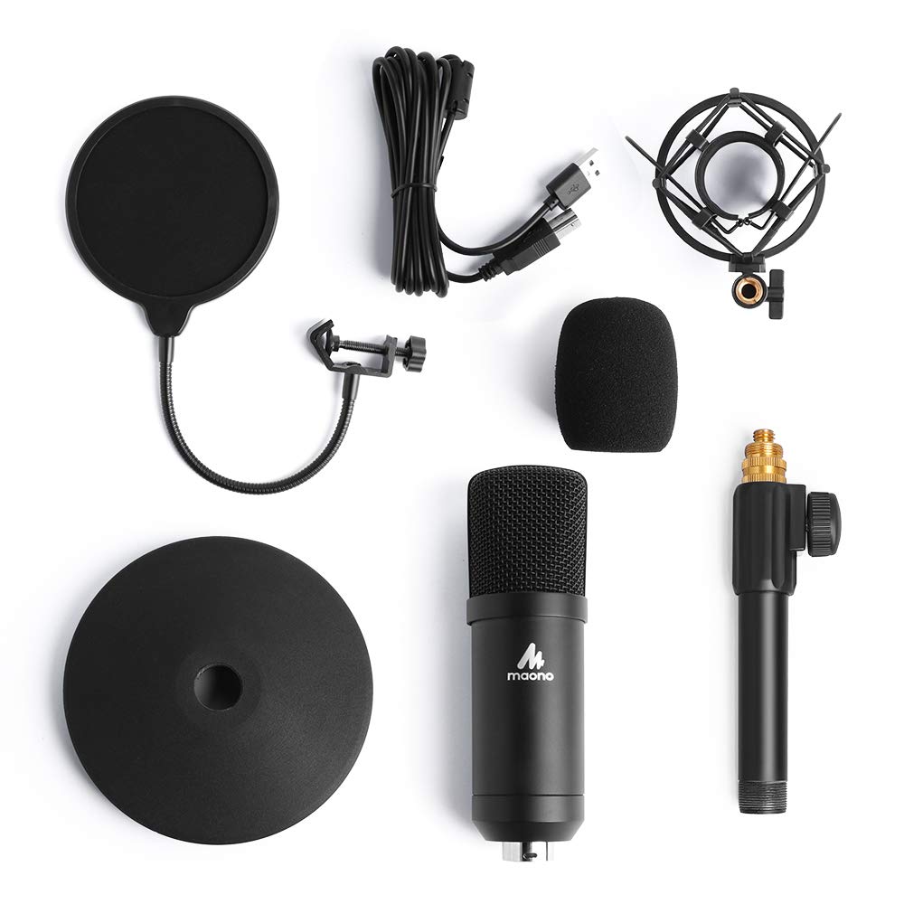 Maono USB mic, Shock Mount, Table stand, Pop filter, Wind foam, USB-B to USB-A Cable