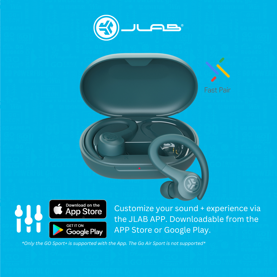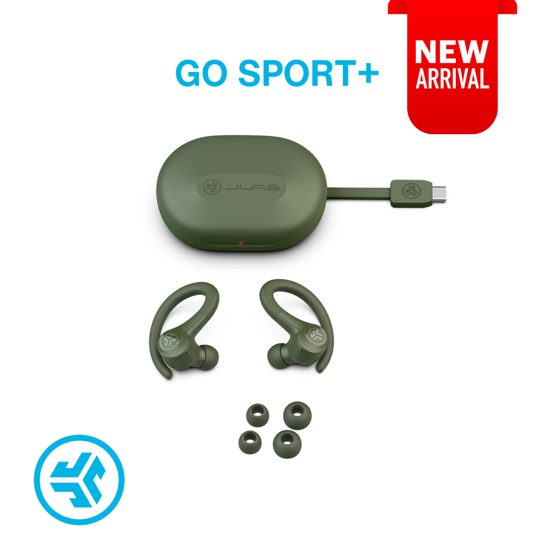 JLab GO Sport+ | Sports True Wireless Earbuds | IP55, 35+ hrs playtime, Google Fast Pair, Custom EQ, App Control, Over-Ear Sports earbud comfort fit