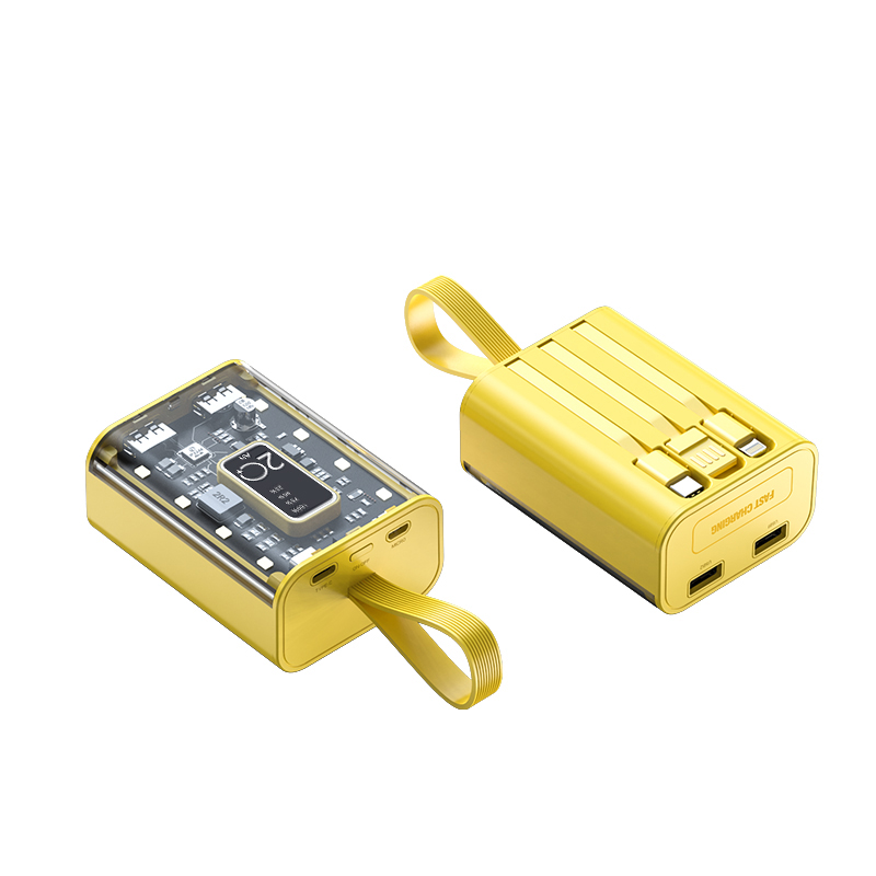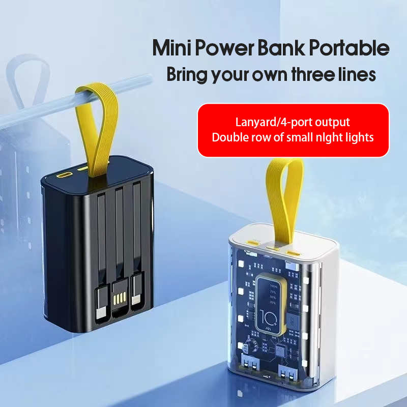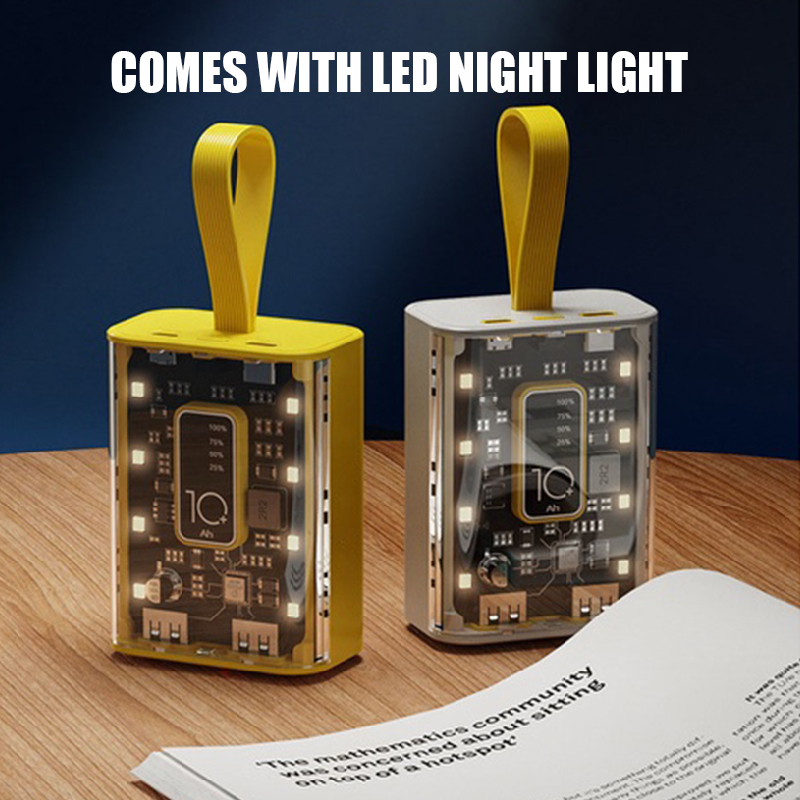 • 1. Transparent mobile power supply: Equipped with 3 charging wires and intelligent digital display, it can charge multiple devices simultaneously.