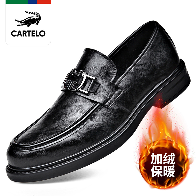 GGMM CARO Caro Crocodile Winter Fleece-lined Warm Soft Bottom Casual Leather Shoes Men's Slip-on round Toe Peas Shoes