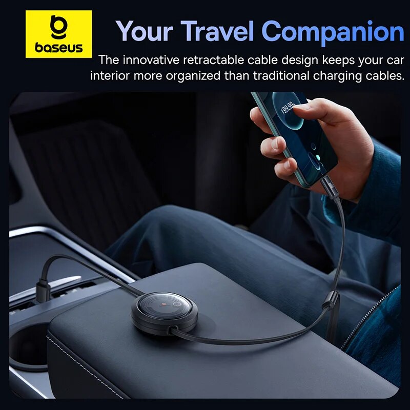 Baseus 100W 3 In 1 Retractable USB Phone Data Cable Type C Fast Charging Cable For iPhone Huawei Xiaomi Android Micro