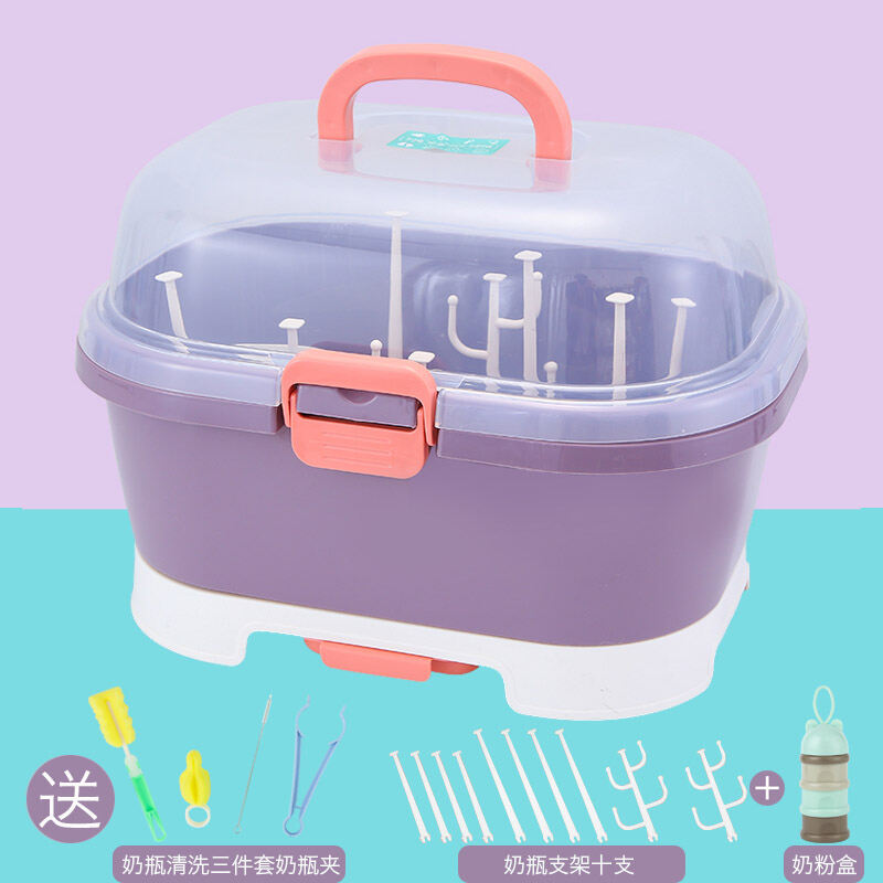 Baby Bottle Storage Box Portable Dustproof Draining Rack with Lid Baby Tableware Milk Powder Storage Box Shelf