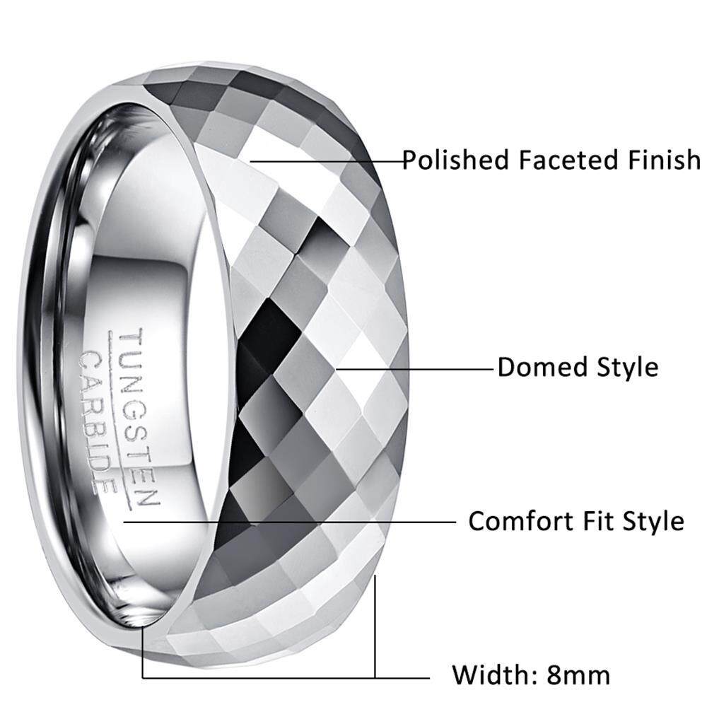 AVECON 【Support Engrave】Men's 8mm Wedding Band Multi-Faceted High Polished Domed Tungsten Carbide Ring Comfort Fit Size 7-12