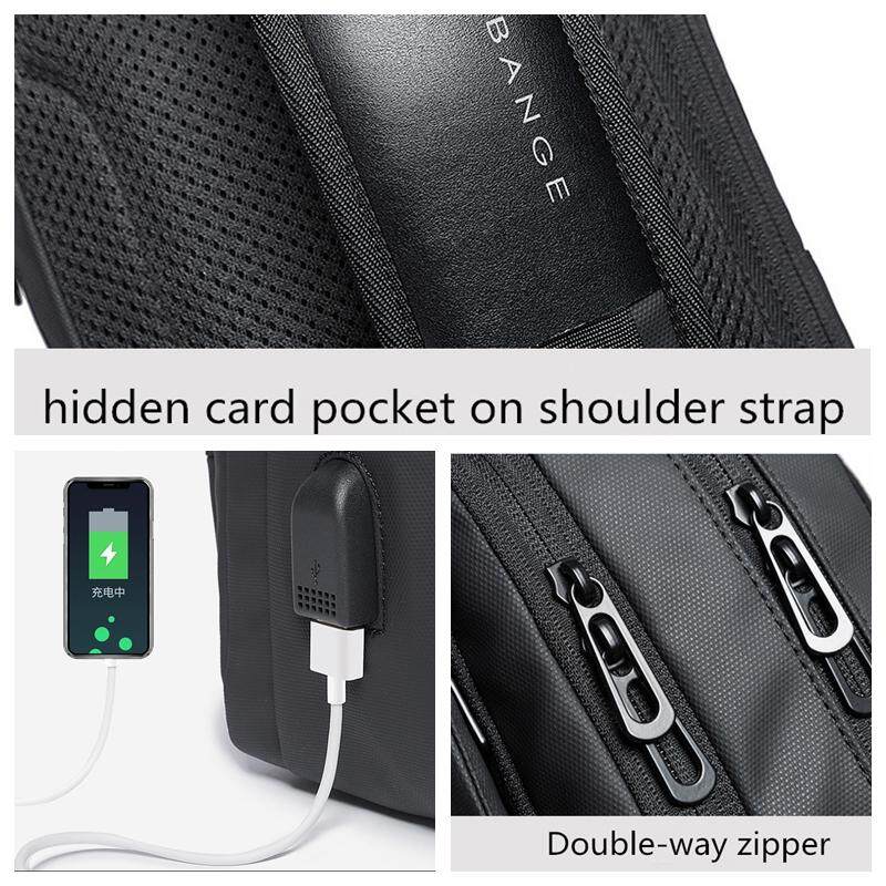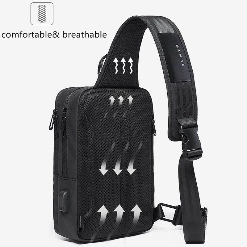 Korean Business Men's Anti-theft Sling Bags Waterproof Travel Shoulder Sling Chest Bag pack For Men with USB Port