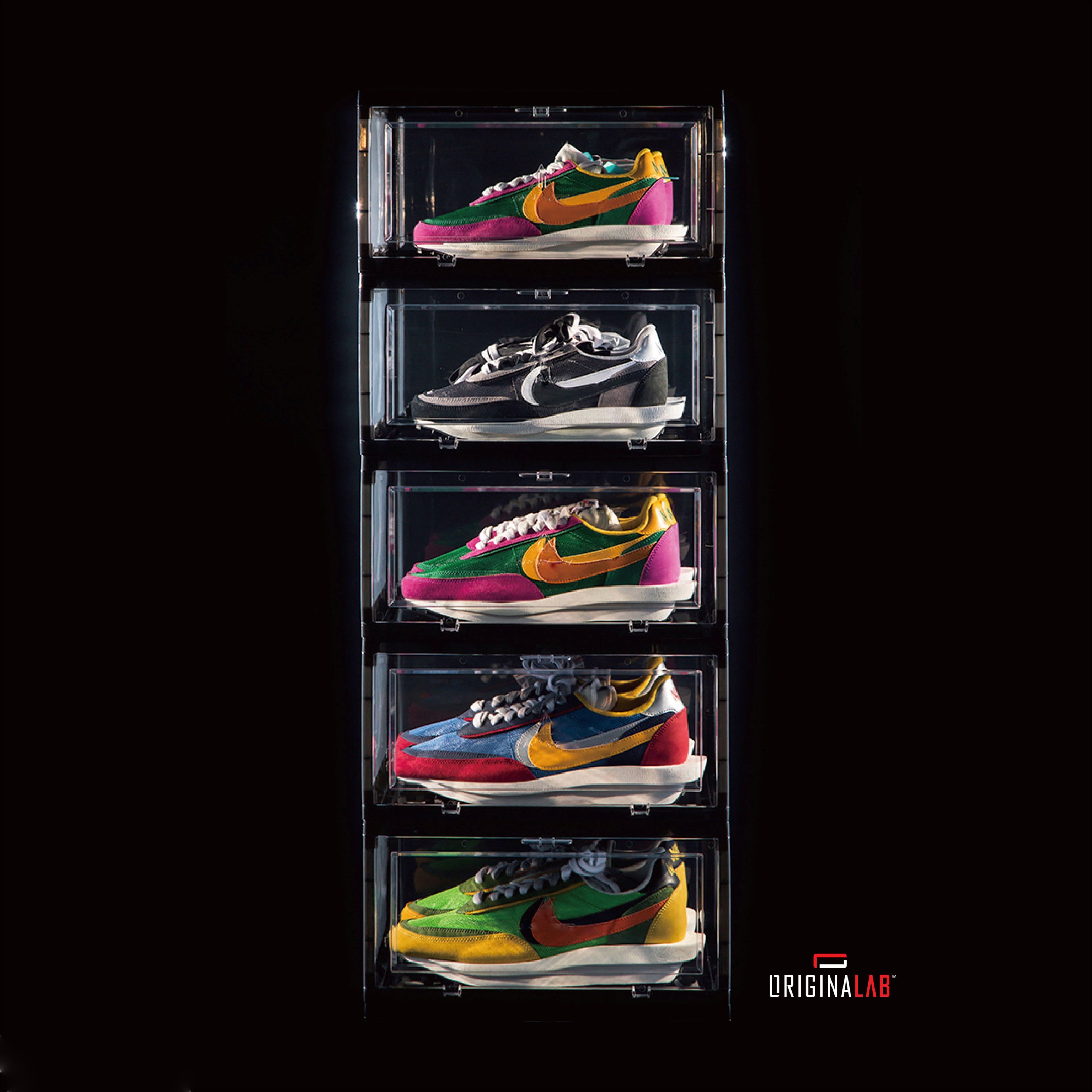 ORIGINALAB Premium Shoe Boxes keep your shoes/sneakers organized and neat. Gives you a good overall view of your shoe collection, making it simple to grab them at a glance.