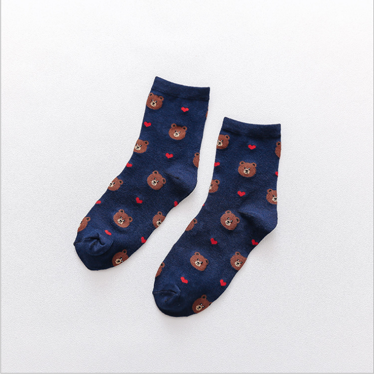 (10 pairs, 10 colors) Brown bear socks For Women Men Kids Children Cute Cartoon Short Socks