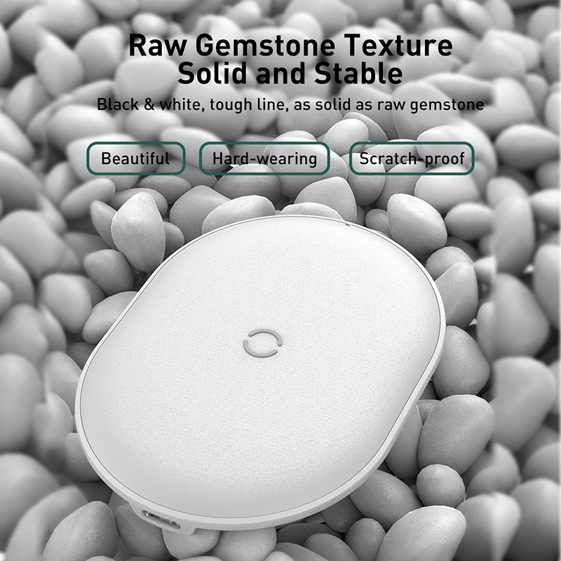 Product: Baseus Cobble Wireless Charger 15WMaterial: PC+SiliconeInput current: DC 5V/2A 9V/2A 12V/2A Max1m Type-C cable*1Features: Qi EPP Certification, 15W Wireless ChargerWireless Charger for Pods Pods ProTexture of Raw Gemstone Simple and beautiful, soft and delicate texture as the raw gemstone, stylish charging for you.15W Wireless Quick Charging: Support 15W wireless charging, charging starts immediately once placedQi EPP Certification: Conforming to Qi standard wireless charging protocol, compatible with mainstream models, safe charging without damaging device.Slim Design Slim and exquisite, it is convenient to carry for trip when you put it in the pocket or bag.Intelligent Charging Protection: Built-in intelligent chip with multiple protections such as overheating, overvoltage, overcurrent, short circuit, etc. for safe charging.Product size: 100.8mm*75.5mm*12.5mmProduct weight: 130.3g (excluding packaging)Color Family: Black / White- KINDLY USES QUALCOMM 3.0 ADAPTER WITH POWER OF 9V/2A(18W)FOR FAST CHARGING