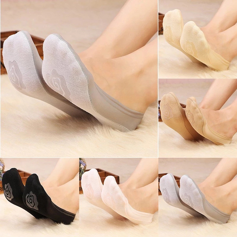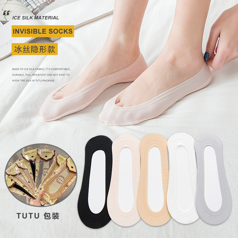 (6 Pairs)Woman Ice Silk invisible Socks Silicone Anti-Slip Seamless Casual Outdoor Socks