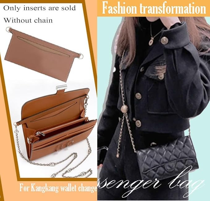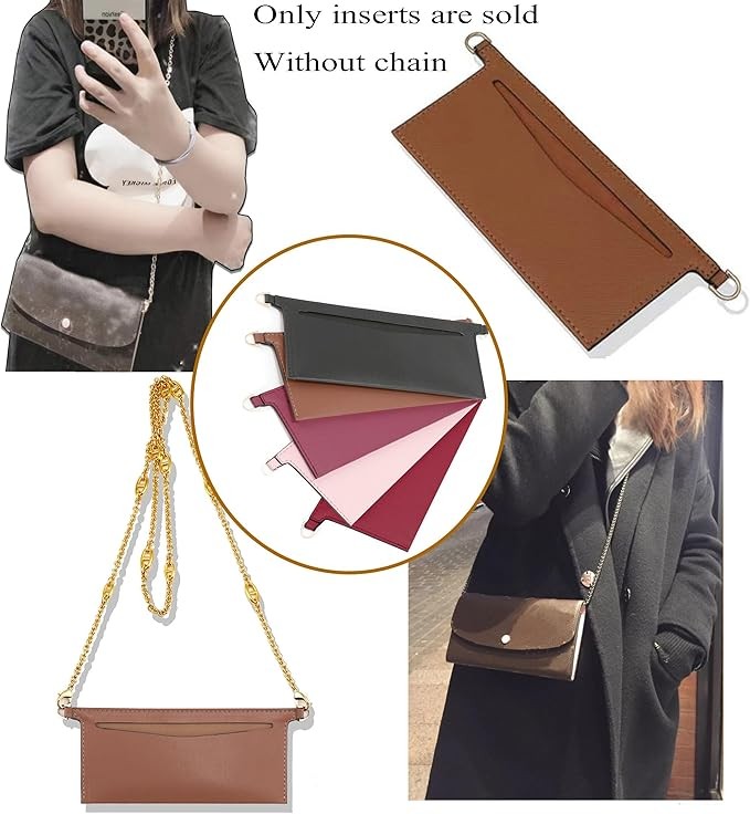 The leather accessory insert (link only) is sold with the pouch insert, without the chain. It is compatible with the classic long flap wallet and a small messenger bag.