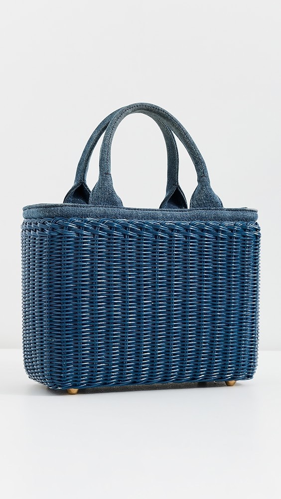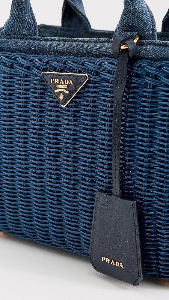 Prada Raffia Straw Denim Handbag