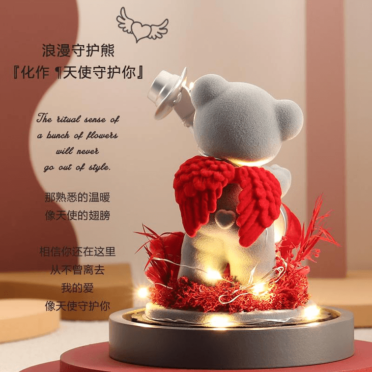 Rosekiss Eternal Flower Rose Romantic Guardian Bear Valentine Gift New Year Gift 12*17cm*1 Box