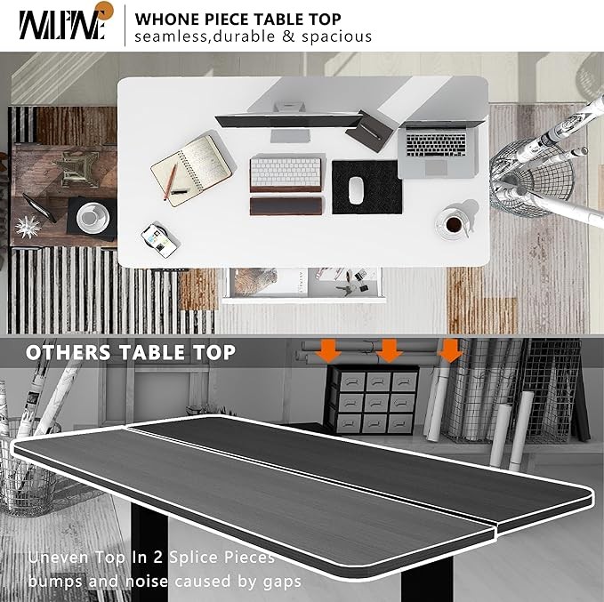 • 【Spacious One Piece Top Work Space】Unlike other adjustable desk products with split into 2 or 3 boards, Win Up Time Standing Desk One Piece Top provides a completely smooth surface. Easy to clean and eliminates bumps and noise caused by gaps. 0.7 inch solid wood tabletop of this adjustable height desk, enough work area for 3 monitors, laptop, keyboard and other work materials.